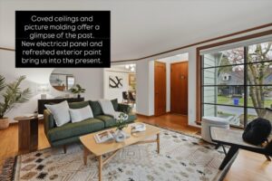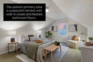 Sunlight pours through restored windows onto original hardwood floors, warming a home that feels both timeless and cherished. A sweet kitchen, welcome slow mornings, while a private upstairs retreat offers peaceful comfort at the end.